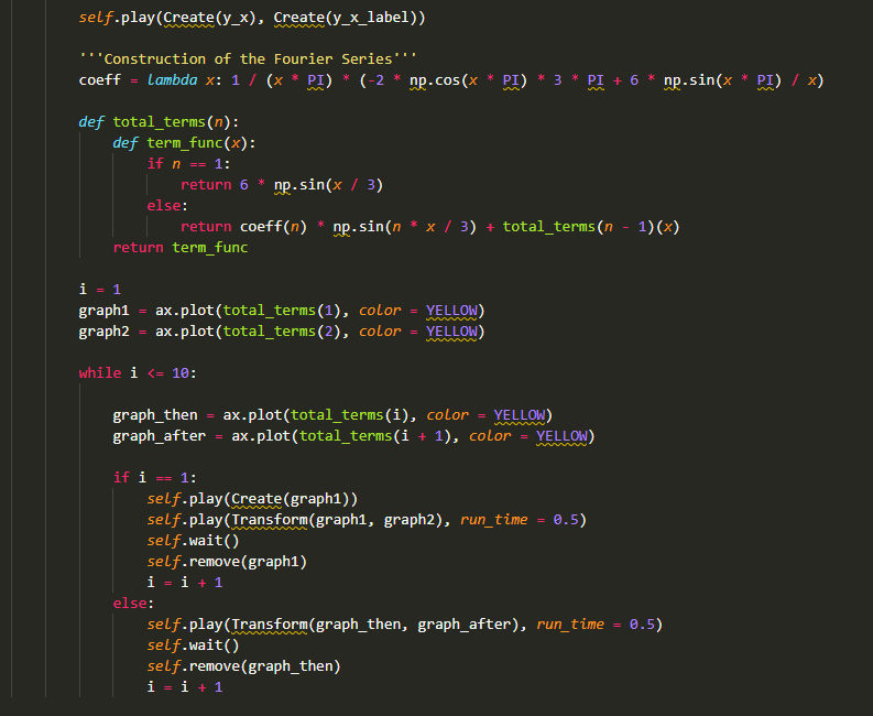 Mathematical animations are being coded using MANIM, a Python language pack. I hope to finish animating important concepts in Calculus before I graduate from university.